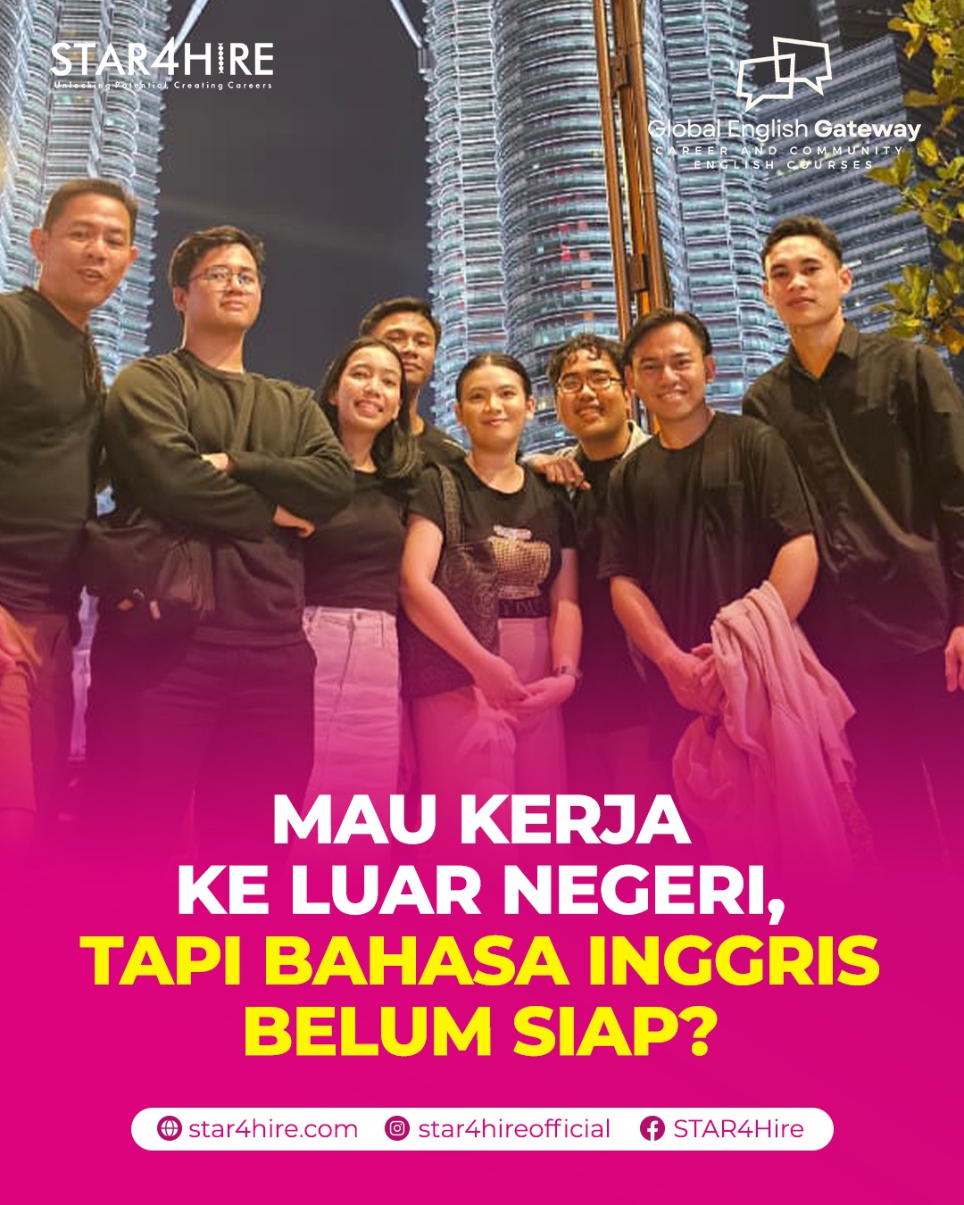 Global English Gateway di Star4Hire bukan sekadar kursus! Ini satu-satunya program yang membuka pintu kesempatan kerja ke luar negeri buat kamu. Bergabung sekarang, kuasai bahasa Inggris, dan masuk ke komunitas eksklusif yang siap bantu wujudkan karier internasionalmu.